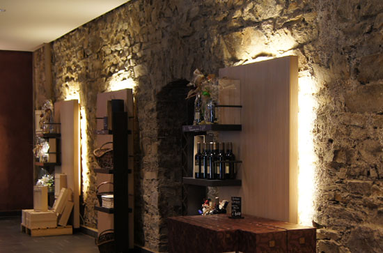 Umfangreiche Elektroinstallation in der Vinothek die Winzergenossenschaft der Dagernova Weinmanufaktur, alte Weinkellergewölbe mit innovativem Beleuchtungskonzept
